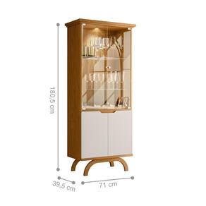Ela conta com 4 portas sendo 2 de vidro e 2 de madeira, 2 pés, e 2 prateleiras.