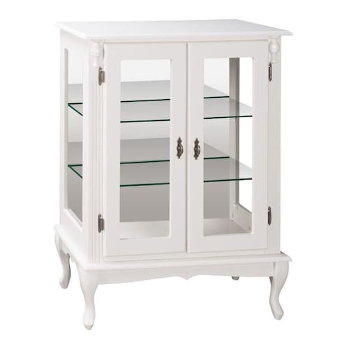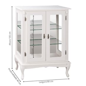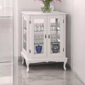 - 01 Cristaleira de Madeira 2 Portas 2 Prateleiras Vidros na Lateral Pés Luiz XV