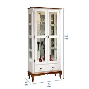 Produzida em Madeira Maciça para tons amadeirado em verniz e MDF nos tons coloridos com acabamento laca, materiais de alta qualidade e durabilidade, esta cristaleira de vidro e madeira com certeza vai impressionar. Encomende a sua hoje e eleve a decoração de sua casa ao próximo nível.
