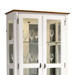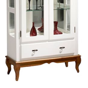 Cristaleira com Espelho e LED 2 Portas 3 Prateleiras e Laterais em Vidro 60303EL Linz Móveis - Branco/Imbuia Glazer