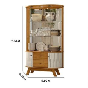 Material: MDP com as portas em MDF | Cor: Cumaru Opala | Cômodo Indicado: Sala de Estar | Dimensões do Produto (A X L X P): 1,80 x 0,90 x 0,38 | Possui Prateleira: Sim | Possui Espelho: Sim | Quantidade de Espelho: 3 | Possui portas: Sim | Quantidade de portas: 4 Portas | Tipo de Porta: Deslizante | Possui LED: Não | Possui Gaveta: Sim | Quantidade de Gavetas: 2 | Tipo de Corrediça da Gaveta: Telescópicas | Possui pés: Sim | Quantidade de pés: 4 | Possui Vidro: Sim | Peso do Produto (Kg): 57.1 | Altura do Produto (cm): 180 | Largura do Produto (cm): 90 | Comnto do Produto (cm): 38 | Nome do Simples no Fornecedor: Cristaleira Moss | Garantia do Fabricante: 90 dias | Instruções/Cuidados: Evite contato com líquidos. Nada de lavar os móveis. Móveis não gostam de umidade. Não deixe o móvel exposto ao sol. Os acessórios também precisam de limpeza. | Produto precisa de Montagem?: Sim, a montagem é simples mas sugerimos a contratação de algum experiente de sua preferência | Material para Filtro: MDP | Material da Estrutura: MDP | Necessita Fixação na Parede: Não | Conteúdo Embalagem: Cristaleira Moss | Origem: Nacional | Estado de Origem: Paraná | Quantidade de Volumes: 3 | Comnto x Largura x Altura (volume 01): 0,90 x 0,42 x 0,08 | Comnto x Largura x Altura (volume 02): 1,19 x 0,36 x 0,06 | Comnto x Largura x Altura (volume 03): 1,21 x 0,47 x 0,14 Cor: Cinamomo/Off White