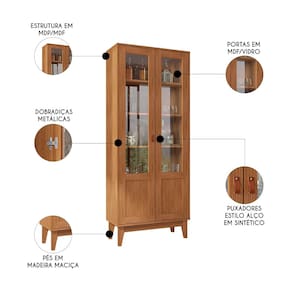 A Cristaleira com Portas de Vidro Sala de Jantar Liria C14 Cedro, da Mpozenato, combina perfeitamente funcionalidade e design.