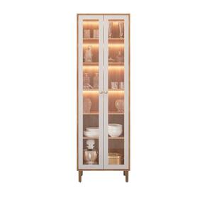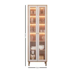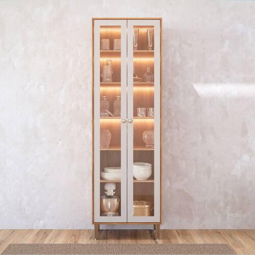 Caracteristicas: Material em MDF 2 Portas de vidro 5 Prateleiras Pes em PVC Acabamento UV texturizado fosco Kit LED Pes com regulagem de altura Portas com vidro 15mm Puxadores em ABS Prateleira suporta peso de ate 5kg
