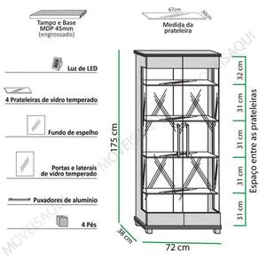 Cristaleira Cristal Nature - Imcal Móveis Precisando de um móvel para guardar aquelas lindas taças, pratos e todas as aquelas louças que são mais delicadas? A Cristaleira Cristal - Imcal Móveis é perfeita para completar sua cozinha ou sala de jantar com sofisticação; armazenando de forma fina e requintada todas suas louças, deixando o ambiente muito mais organizado. Aproveite e leve está luxuosa cristaleira!Dimensões do Produto Montado:Altura: 175 cmLargura: 72 cmProfundidade: 38 cmObservações:- Possui 2 portas de vidros;- Possui 4 prateleiras de vidro temperados;- Espelho ao fundo 3mm; - Iluminação led bivolt na parte superior com interruptor;- Pode ser usada como bar e/ou cristaleira;- Portas com puxadores de alumínio;- Pintura Ultravioleta com acabamento fosco. Marca: Não Informado