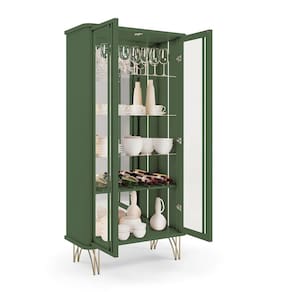 Os pés de aço maciço com acabamento dourado adicionam um toque de requinte, proporcionando estabilidade e sofisticação. Disponível em Off White, Off White-Cinamomo e Verde Pistache, a Cristaleira Crystal se adapta a diversos estilos de decoração.