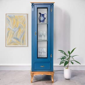 A Cristaleira de Madeira 1079-E é uma peça sofisticada e funcional, perfeita para valorizar sua decoração. Com uma estrutura robusta em madeira, ela conta com uma porta de vidro lateral e fundo espelhado, proporcionando um efeito elegante e ampliando o ambiente. A cristaleira possui uma gaveta para armazenar itens pequenos e três prateleiras internas que oferecem amplo espaço para exibir objetos decorativos. Seus pés no estilo Luiz XV conferem um toque de requinte, tornando este móvel uma excelente escolha para quem busca aliar beleza e praticidade em sua casa.