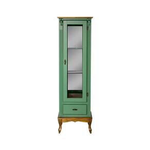 - 1 Cristaleira de Madeira 1 Porta 1 Gaveta 3 Prateleiras Lateral com Vidro Espelho no Fundo Pés Luiz XV