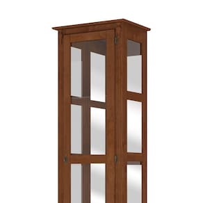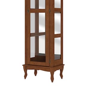 - 01 Cristaleira de Madeira 1 Porta 3 Prateleiras Lateral com Vidro Fundo de Espelho Pés Luiz XV