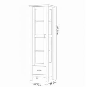 Guarde itens de mesa posta, como toalhas e jogo americano, na gaveta e exponha seus itens favoritos como taças e louças no compartimento de vidro. Além disso, o design com laterais em vidro amplia visualmente o ambiente, enquanto a madeira maciça garante estabilidade e beleza duradoura. Tenha um cantinho especial com muito charme. Garanta já a sua Cristaleira de Madeira e surpreenda-se!