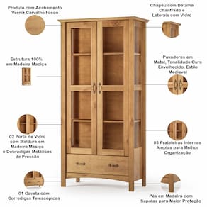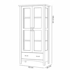 Com 2 portas e 1 gaveta, essa cristaleira rústica oferece o espaço perfeito para organizar suas taças, porcelanas e objetos de decoração mais finos, mantendo-os livres de poeira e sempre à vista. Além disso, o "chapéu" com detalhe chanfrado e os puxadores em metal medieval conferem um ar de castelo moderno ao seu ambiente. Uma solução linda e prática para sua sala de jantar.
