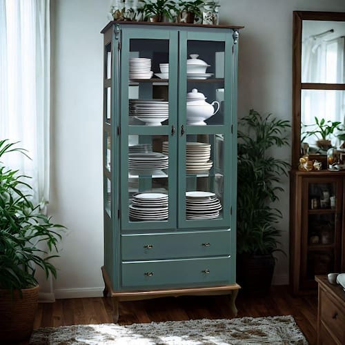A Cristaleira Sevilha 1095-E combina elegância e funcionalidade. Com duas portas de vidro, três prateleiras de vidro e fundo espelhado, ela exibe suas coleções com sofisticação. As duas gavetas oferecem praticidade para guardar itens pequenos. Os pés Luiz XV adicionam um toque clássico e atemporal, enquanto a madeira de alta qualidade garante durabilidade e resistência.