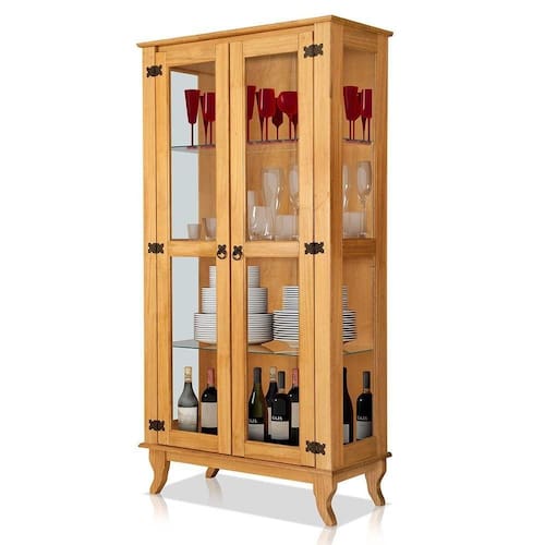 Características da Cristaleira de Madeira Maciça 2 Portas de Vidro Luma: