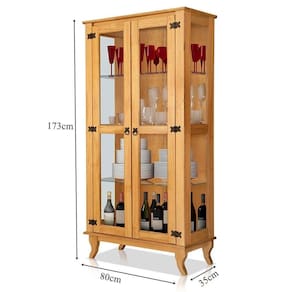 Dimensões da Cristaleira de Madeira Maciça 2 Portas de Vidro Luma: