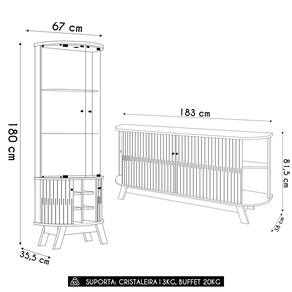 Peso Suportado Distribuído: Cristaleira 13 kg distribuídos/Buffet 20 kg distribuídos.