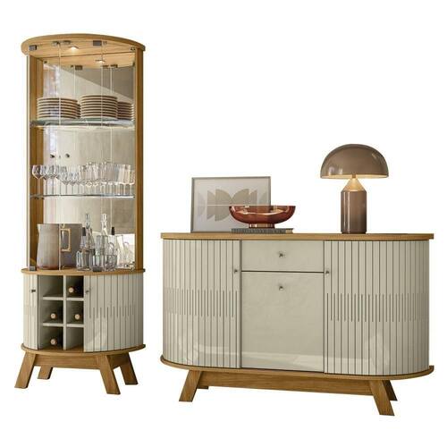 O Cristaleira de Vidro e Buffet Melina Z10 Cumaru/Opala, da Mpozenato, é a combinação perfeita de sofisticação e funcionalidade para sua Sala de Estar.
