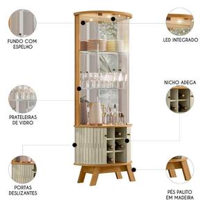Esse Buffet Aparador conta com 3 portas, sendo 1 com dobradiças metálicas e 2 deslizantes, além de 1 gaveta com corrediças telescópicas para maior suavidade no uso. As prateleiras oferecem o espaço ideal para organização, enquanto o tampo e a base apresentam detalhes curvos, garantindo um acabamento sofisticado. Os pés palito completam o design elegante, combinado com as chapas de MDP para maior resistência. Esse Buffet Para Sala proporciona amplo espaço para utensílios e objetos decorativos, mantendo a estética funcional. A Cristaleira de Vidro adiciona elegância e praticidade à decoração da sua sala. Com duas portas deslizantes e duas portas de vidro, ela permite uma visualização clara dos itens armazenados. As prateleiras de vidro e os espelhos realçam a beleza dos objetos expostos, criando um efeito visual encantador. Os quatro pés garantem estabilidade. Fabricada em MDP, a Cristaleira é resistente e durável. Com iluminação LED ela oferece praticidade e um acabamento sofisticado. A Cristaleira com Adega proporciona um espaço compacto e elegante para a exposição de cristais e objetos decorativos, destacando-os de forma única e charmosa.
