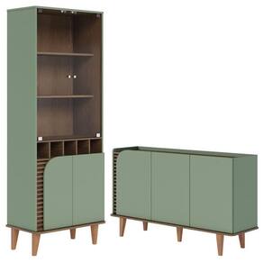 Cristaleira e Aparador Buffet Para Sala Jurerê Hortelã Amêndoa Colibri