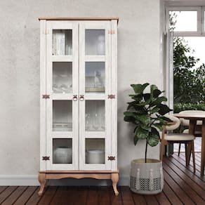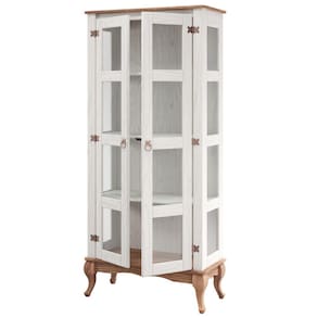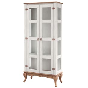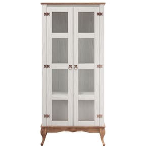 Cristaleira em Madeira Maciça com 2 Portas Branco Envelhecido