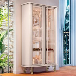 Esta elegante cristaleira é perfeita para exibir sua coleção ou objetos de decoração favoritos. Esta cristaleira oferece amplo espaço de armazenamento e permite que você mostre seus itens de forma elegante e sofisticada. Seu design alto é ideal para economizar espaço, tornando-o uma adição prática e elegante para qualquer sala de estar, sala de jantar ou cozinha.
