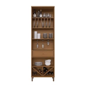 Sim. O móvel inclui suporte metálico para taças suspensas, otimizando o espaço e trazendo sofisticação.
