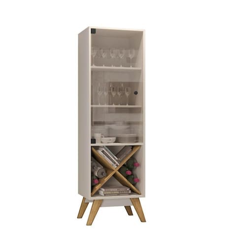 Com estilo retrô a Cristaleira Graça é o complemento ideal para organizar e deixar sua sala de jantar mais aconchegante. Produzida em MDP 15mm, Porta em vidro temperado, Adega decorativa, Pés em madeira maciça. Pesos e Dimensões Altura dos Pés: 20 cm Altura (cm): 158 cm Largura (cm): 44 cm Profundidade (cm): 39 cm Peso (kg): kg Materiais e Acabamentos Material Principal: MDP Material da Porta: Vidro Acabamento: Pintura UV Escala de Brilho: Fosco Acabamento da Porta: Cristal Escala de Brilho da Porta: Brilhante Tipo de Dobradiça/Corrediça da Porta: Metálica Acabamento da Prateleira: Pintura UV Escala de Brilho da Prateleira: Brilhante Material da Prateleira: MDP Montagem Necessita Montagem: Sim Complexidade da Montagem Baixa: pode ser montado por uma pessoa sozinha Sistema de Montagem: Parafusos e Minifix Recomendações de Uso, Manutenção e Limpeza Pano levemente úmido Características Tipo de Porta: Bater Marca: JCM Móveis Suporta Até (kg): 30 kg Quantidade de Garrafas da Adega: 06 Possui Vidro: Não Possui Rodízio: Não Possui Pés: 04 Possui Iluminação: Não Possui Gavetas: Não Possui Adega: Sim Peso Máximo por Prateleira: 4 kg Estilo: Retrô Sapatas Niveladoras: Não Tipo de Puxador da Porta: Externo Possui Espelhos: Não Itens Inclusos Itens Inclusos: Cristaleira, Kit Ferragens e Manual de Montagem.