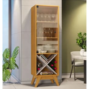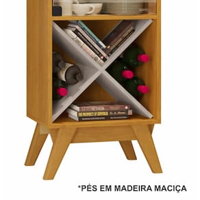 Porta de vidro temperado Adega decorativa Puxador em ABS Pés em madeira macica