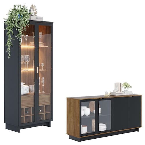 Cristaleira Guanabara com Aparador para Sala Buffet Vitória Noce Milano Preto Acetinado – Colibri