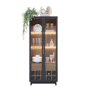 Cristaleira Guanabara com Aparador para Sala Buffet Vitória Noce Milano Preto Acetinado Colibri