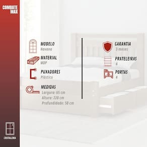 DIMENSÕES: Altura: 220 cm Largura: 65 cm Profundidade: 50 cm