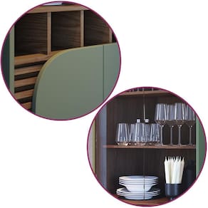 Descubra a sofisticação da Cristaleira Jurerê, com design marcado por pés de madeira maciça e linhas orgânicas. Suas duas portas de vidro temperado (5mm) revelam uma adega para 05 garrafas, enquanto apliques ripados e quinas arredondadas na base conferem um toque único. Os puxadores dourados completam a fusão perfeita entre o retrô e o contemporâneo. Transforme seu espaço com esta peça que une funcionalidade e estilo em cada detalhe.