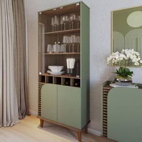 Apresentamos a Cristaleira da linha Jurerê, aquele móvel ideal para deixar seu ambiente com toque de requinte, seu design super moderno com duas portas em vidro transparente temperado que permitem suas louças e cristais ficarem expostas com muito estilo, e seguras com duas prateleiras internas reforçadas.Outras duas portas dando opção para melhor organizar seus objetos ou utensílios. Possui cinco nichos para adega, oferecendo um local perfeito para exibir suas bebidas favoritas. Seus pés em madeira maciça e linhas orgânicas dando um toque robusto. Seu detalhe ripado e quinas arredondas, puxadores dourados deixam esse móvel ainda mais sofisticado, será a escolha perfeita para adicionar beleza e praticidade ao seu ambiente! Garanta já a sua!