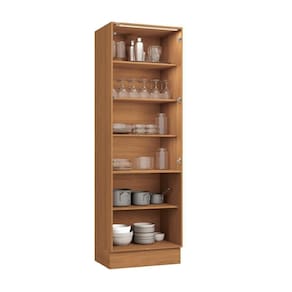 Para um melhor acabamento, a cristaleira conta com rodapés, mas acompanha as ferragens para ser montada suspensa, e se preferir, pode adquirir os pés separadamente, garantindo muita praticidade. Fechando ótimas combinações com os balcões e aéreos da linha, a cristaleira é elegante e moderna, ideal para quem deseja organizar louças de jantar com praticidade e beleza. Com quatro portas, sendo duas com vidro, e seis prateleiras, ela possui amplo espaço, deixando tudo ao seu alcance e sua cozinha mais completa. O diferencial fica para a moldura nas portas superiores e para a iluminação de LED, proporcionando sofisticação e um acabamento perfeito.