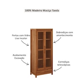 Características: Estrutura em Madeira Maciça de Pinus Taeda de Reflorestamento Pintura semi-brilho 02 Portas com dobradiças com amortecimento 01 Gaveta com corrediças telescópicas Puxadores cava Acabamento escovado Possui led Portas com vidro liso incolor Pés retos em madeira maciça Peso máximo suportado pela Gaveta: 05kg distribuídos Peso máximo suportado pela Prateleira: 10kg distribuídos Peso máximo suportado pelo Tampo: 30kg distribuídos