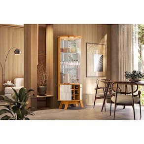 Cristaleira Marina Cinamomo e Off White com 4 Portas de Vidro 3 Espelhos LED e Prateleiras de Vidro Liberty Móveis - Cinamomo | Off White