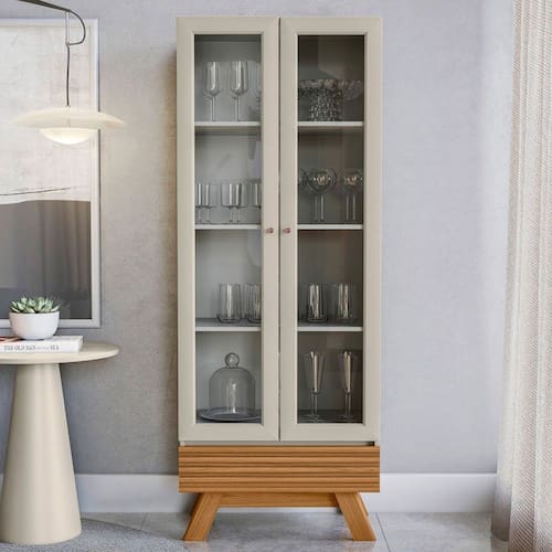 O(a) Cristaleira Marsala 2 Portas 3 Prateleiras Nature/Off White - Linea Brasil é produzido em MDF e MDP na escala de brilho Fosco, e possui um grau de dificuldade de montagem: Médio.
