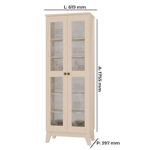 O móvel conta com duas portas em vidro transparente, o que garante uma visibilidade ampla e clara dos objetos guardados na cristaleira. A ampla divisão interna permite organizar louças, copos, taças e outros objetos de forma prática e organizada.