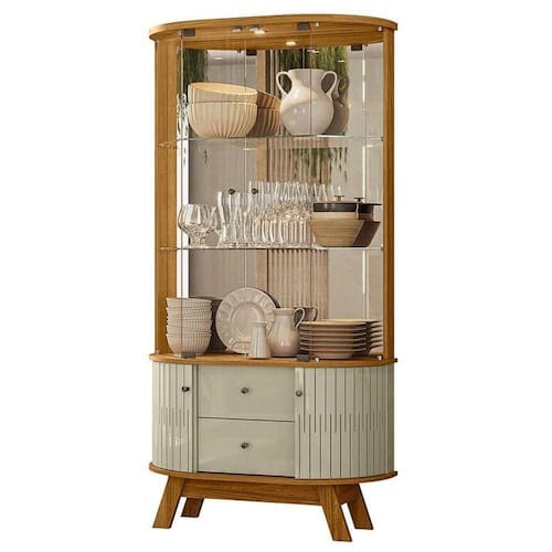 Começou a procurar móveis para sua sala de estar ou jantar? Então apresentamos para você esta bela cristaleira da linha Moss, desenvolvido em MDP, garantindo mais durabilidade e resistência. Possuindo quatro portas, duas delas são confeccionadas em MDF, além de serem curvas, enquanto as outras duas portas são de vidro. Equipado com uma luminária em LED oferece uma iluminação suave e eficiente. Ao fundo possui um espelho, ampliando a sensação de espaço. Contando com duas prateleiras em vidro, é perfeita para organizar suas taças e copos. Seus pés em formato palito adicionam um charme vintage ao design, proporcionando estabilidade. Fabricado pela Madetec, será a escolha ideal para quem busca estilo e funcionalidade. Confira e garanta o seu!