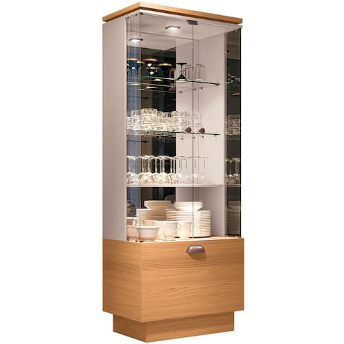 Com acabamentos impecáveis torna o espaço mais elegante e garante grande destaque para a composição dos móveis na ambientação. Expressa sofisticação e modernidade, possui sistema de fecho magnético nas portas, proporcionando segurança e facilidade, espelho ao fundo e luminária, que expõe com ainda mais graciosidade as louças, cristais, taças e decorações em geral. Conta também com um nicho adega embutido com espaço para 6 garrafas. Pode ser disposta em sala de estar ou jantar, entre ambientes integrados, hall de entrada, dentre outras maneiras de sua preferência. Uma aposta perfeita para quem deseja inovar sem erro!