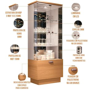 Super contemporânea, a Cristaleira Nicho Adega com Led Portas de Vidro Dominic B01 Cinamomo Off White - Lyam Decor transborda jovialidade, realça o ambiente e agrega muito valor à sua decoração!