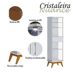 A cristaleira da linha Nuance combina elegância e funcionalidade, apresentando duas portas em vidro são perfeitas para destacar seus cristais e louças. Três prateleiras em vidro oferecem amplo espaço para exibir seus objetos de forma organizada e acessível. Possui um espelho que dá uma sensação de profundidade ao ambiente. As duas luminárias em LED proporcionam uma iluminação suave. Além disso, é equipada com uma gaveta espaçosa, perfeita para guardar seus utensílios. Seus pés em madeira maciça entregam mais estabilidade. Produzido pela Imcal, são desenvolvidos em MDP/ MDF com materiais de alta qualidade entregando mais durabilidade. Com um design moderno e sofisticado será a escolha elegante, dando um toque de sofisticação e organização para sua casa. Confira e garanta o seu!