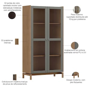 Fabricada em madeira maciça de alta qualidade, essa peça encanta com suas portas de vidro incolor canelado, que protegem e embelezam seus objetos mais especiais, criando um delicado jogo de luzes e transparências. Com prateleiras internas, você pode organizar desde taças de cristal até porcelanas finas, transformando essa cristaleira de vidro em uma verdadeira galeria para seus tesouros domésticos. Por fim, os pés flutuantes completam o design, conferindo leveza e um toque contemporâneo a qualquer ambiente.
