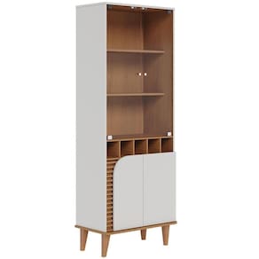 Cheia de estilo e sofisticação, a Cristaleira Para Sala de Jantar Bar Adega 4 Portas Julia Off White Matte Freijó, da Lyam Decor, vai transformar a sua casa e deixa-la muito mais funcional e elegante. Os pés de madeira maciça são marcados por um design retrô, ao passo que uma das portas conta um design orgânico representado pela quina curva, além do detalhe ripado que garante o toque contemporâneo. Já as portas de vidro temperado evidenciam as prateleiras que receberão os cristais e taças. Logo abaixo, é possível aproveitar uma adega para 05 garrafas e, assim, dispor as suas bebidas preferidas. Em outras palavras, o complemento perfeito para a sua sala de jantar ou bar e, assim, ter tudo o que precisa ao alcance das mãos.