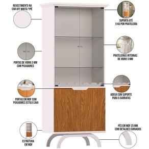 Complemente sua sala de jantar com a deslumbrante Cristaleira Para Sala de Jantar Bar Adega 4 Portas Vicky N01 Off White Ypê, da Lyam Decor. Seu design moderno e elegante adiciona um toque de sofisticação a qualquer ambiente, principalmente por conta das duas portas de vidro que permitem exibir suas garrafas favoritas, ou seja, uma cristaleira adega perfeita para os amantes de vinho.
