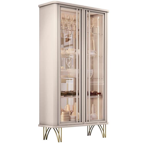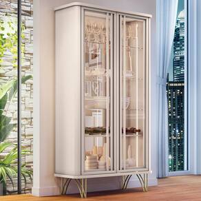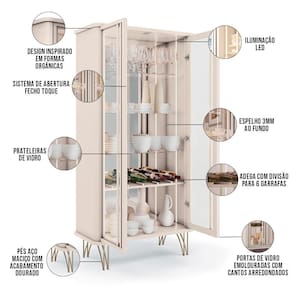 A Cristaleira Síria é o que falta pra sua sala de jantar! Com acabamentos impecáveis, torna o espaço mais elegante e garante grande destaque para a composição dos móveis na ambientação. O espelho ao fundo e iluminação led, expressa sofisticação e modernidade, que expõe com ainda mais graciosidade as louças, cristais, taças e decorações em geral. O design orgânico arredondado mesclado com o estilo industrial é uma opção moderna que traz leveza e harmonia ao ambiente. Os pés em aço com acabamento dourado conferem um toque de luxo e requinte, contrastando com a transparência das portas de vidro. Pode ser disposta na sala de jantar, de estar, cozinha, escritório ou até em corredores e espaços de circulação, aposta perfeita para quem deseja inovar sem erro!