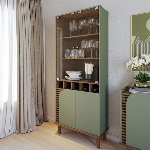 Explore a sofisticação da Cristaleira Jurerê, com um design caracterizado por pés de madeira maciça e linhas orgânicas. Suas duas portas são de vidro temperado. Possui adega para 5 garrafas, enquanto os apliques ripados e quinas arredondadas na base proporcionam um toque único. Os puxadores dourados completam a fusão perfeita entre o retrô e o contemporâneo. Transforme seu ambiente com esta peça que combina funcionalidade e estilo em cada detalhe. CARACTERÍSTICAS TÉCNICAS: - Produzido em MDP de 12 e 15mm, MDF de 15mm e HDF3 mm - Acabamento Fosco com Pintura UV - Portas com Dobradiça Metálica - Portas com Vidro Temperado de 5mm - Detalhe Curvo e Ripado Artesanal - Adega para 5 Garrafas - Pés em Madeira Maciça com 17,5 cm de Altura - Peso Suportado na Base de 8kg - Peso Suportado por Prateleira de 5kg - Possui 4 Portas, sendo 2 de vidro e 2 Prateleiras INFORMAÇÕES TÉCNICAS: Altura: 182,2cm Largura: 70cm Profundidade: 39,3cm Peso: 44kg ITENS INCLUSO: - Cristaleira Jurerê - Manual de Montagem - Kit de Ferragens INFORMAÇÕES ADICIONAIS: - Não realizamos a montagem do móvel e não nos responsabilizamos por ela. Verifique o produto antes de montá-lo. Produtos danificados na montagem não serão trocados. Montagem e instalação são por conta do comprador. - As imagens decorativas são ilustrativas e podem conter itens não inclusos. As cores do produto podem variar conforme o monitor, iluminação ou percepção visual. - Limpeza: Use um pano macio e seco ou levemente umedecido com água. Não utilize materiais abrasivos como palha de aço ou objetos cortantes. Garantia de 3 meses contra defeitos de fabricação conforme o Código de Defesa do Consumidor.