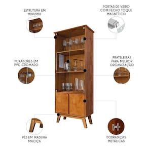 Cristaleira Porta de Vidro 70cm Pés Retrô Madri Naturalle - Bechara