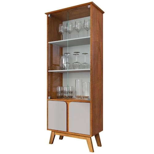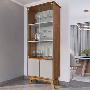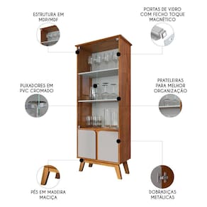 Cristaleira Porta de Vidro 70cm Pés Retrô Madri Naturalle/Off - Bechara