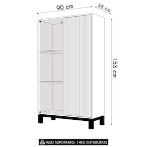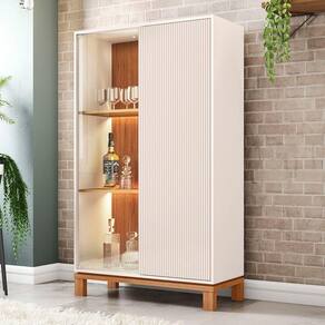 Os pés em cavalete, conferem um ar contemporâneo à peça, criando uma sensação de amplitude e fluidez no ambiente. Além disso, a iluminação interna em LED nas prateleiras, destaca a beleza de cada objeto exibido, seja taças, cristais ou objetos de decoração. Iluminação que não só realça a beleza dos itens, mas também cria uma ambiente aconchegante e sofisticada.