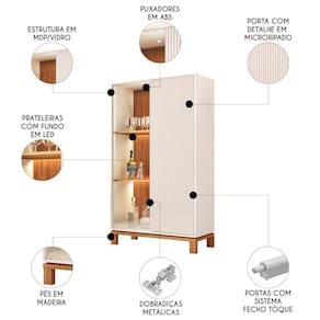 Cristaleira Porta de Vidro Com LED 90cm Lucca Off/Freijó C01 - Mpozenato