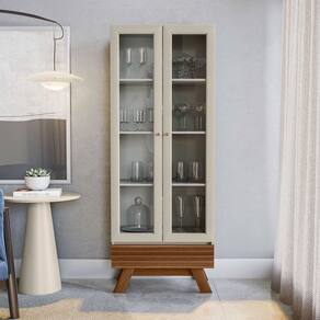 Características: Estrutura em MDP/MDF 2 Portas com Vidro 3 Prateleiras 1 Gaveta Corrediça telescópica Detalhe ripado Pés em estilo retrô